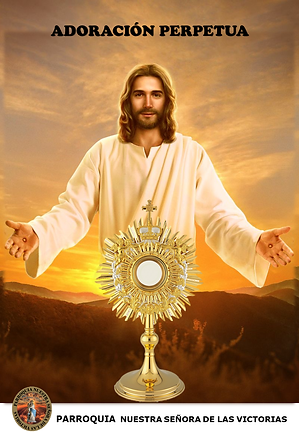 La Adoración Perpetua es oración continua antes de Jesús en el Santísimo. Es Una expresión de nuestro amor por Jesús. La Hostia; el Cuerpo, Sangre, Alma y Divinidad de Jesús está puesto en el altar y le damos el honor y la adoración. Se puede comprometer a pasar una hora antes de Jesús.